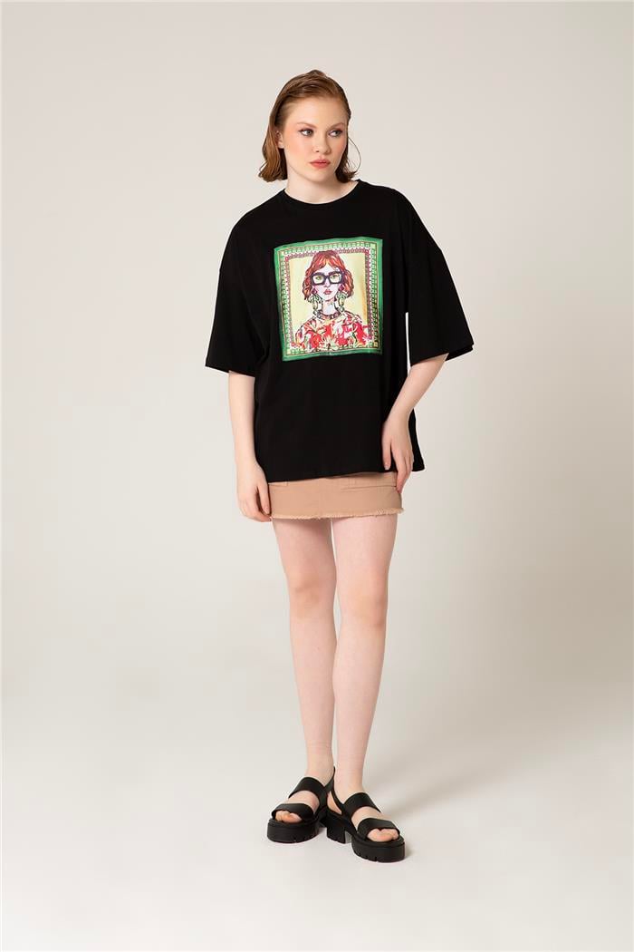 Avrile Kadın Kız Baskılı T-Shirt SİYAH A23-10120 (A23-10120)