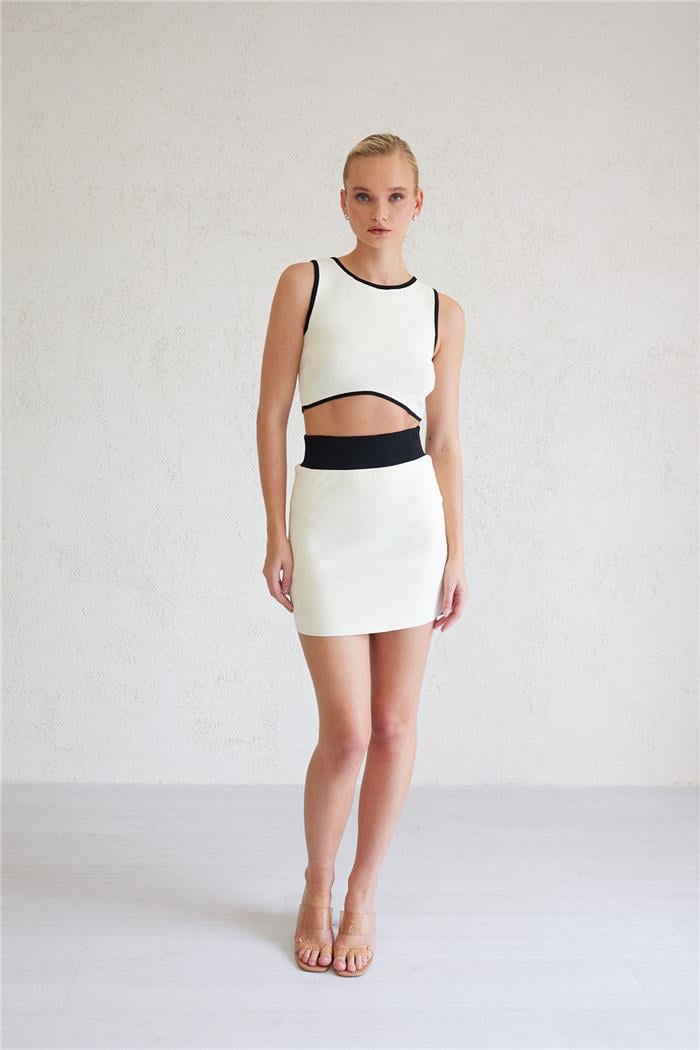 Avrile Kadın KONTRAST ÇİZGİ DETAYLI TRİKO TAKIM HAM EKRU-SİYAH A92347-S