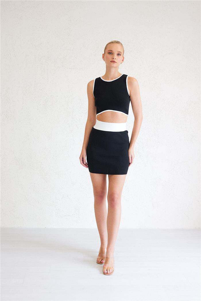 Avrile Kadın KONTRAST ÇİZGİ DETAYLI TRİKO TAKIM SİYAH-BEYAZ A92347-S