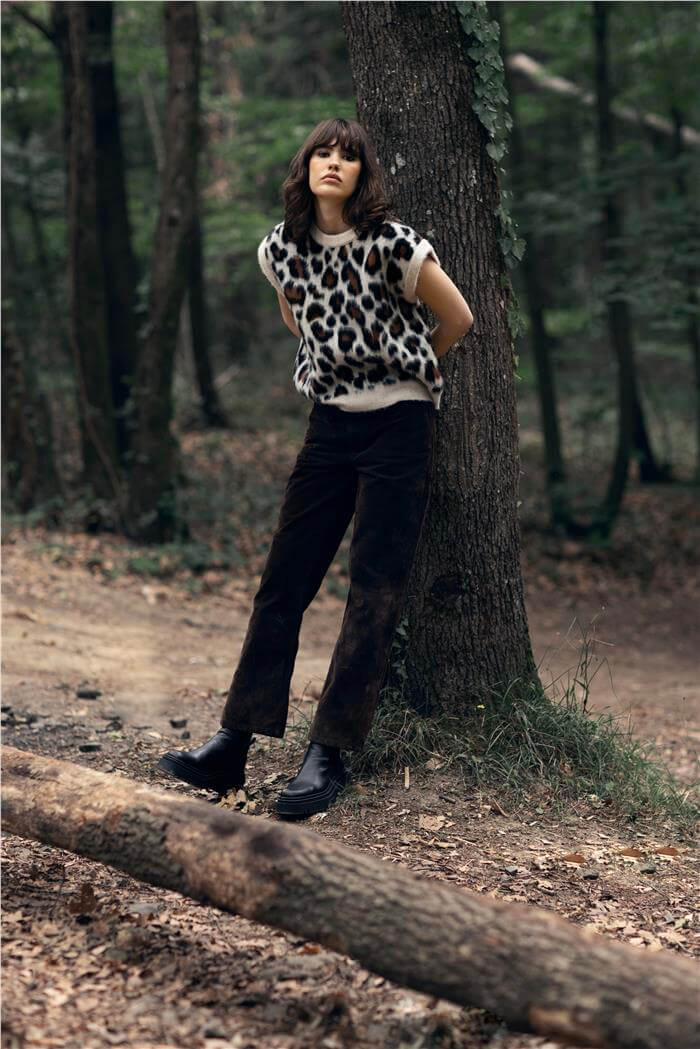 Avrile Kadın Leopar Desenli Süveter TAŞ A92569-S (A92569-S)