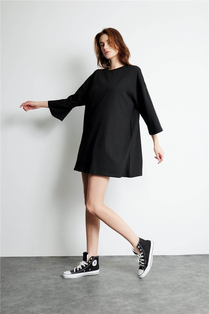 Avrile Kadın OVERSIZE  ELBİSE SİYAH A24-10273