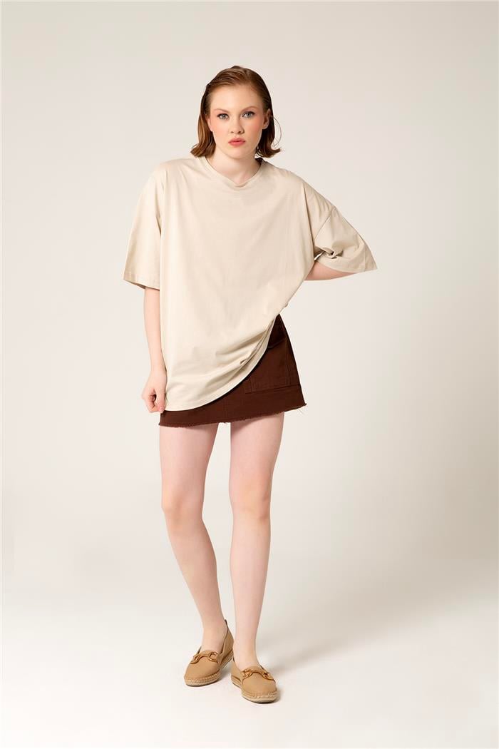 Avrile Kadın Oversize T-Shirt BEJ A23-10111 (A23-10111)