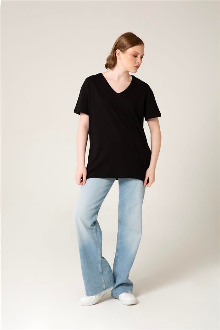 Avrile Kadın V Yaka Basic T-Shirt SİYAH A23-10115 (A23-10115)