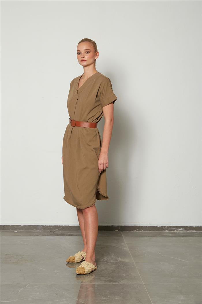 Avrile Kadın V Yaka Salaş Elbise KAHVE A23-10141 (A23-10141)