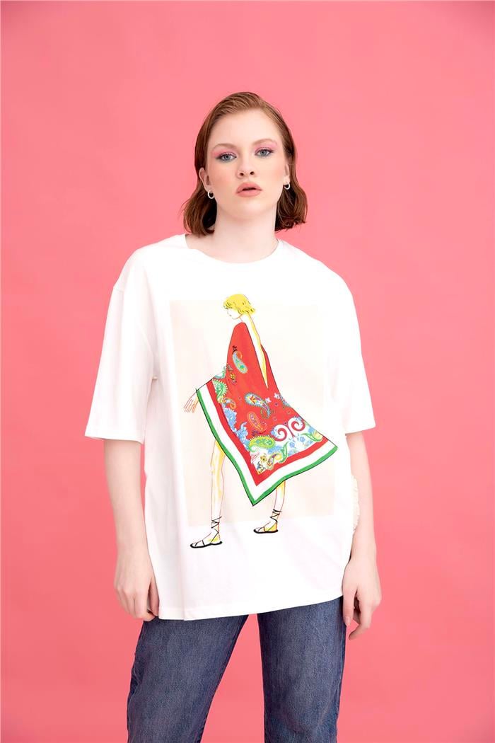 Avrile Kadın Yanı Yırtmaçlı T-Shirt EKRU A23-10113 (A23-10113)