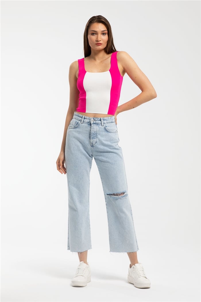 Kare Yaka İki Renkli Triko Bluz A91785-S
