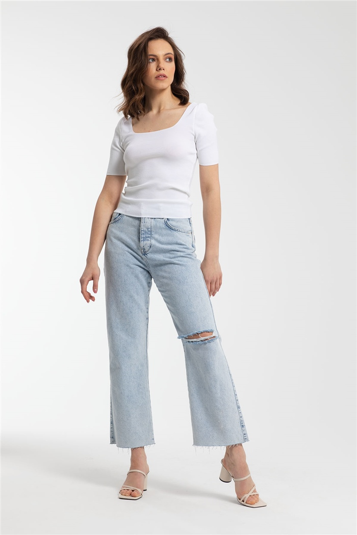 Avrile Kadın Kare Yaka Kısa Kollu Triko Kazak BEYAZ A91617-S (A91617-S)