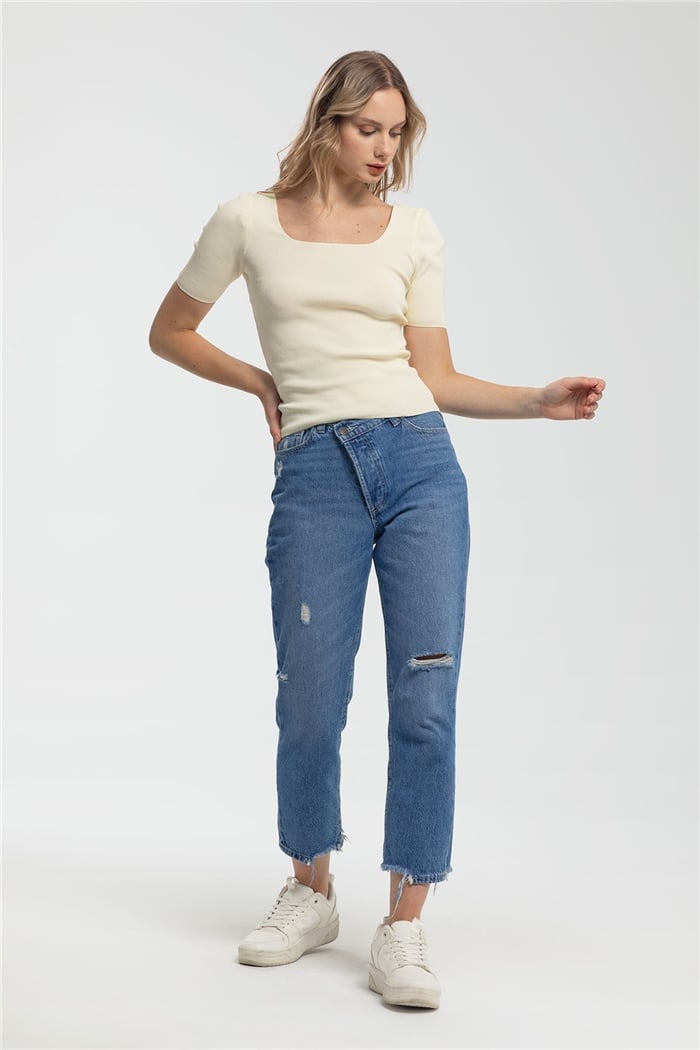 Kare Yaka Kısa Kollu Triko Kazak A91617-S