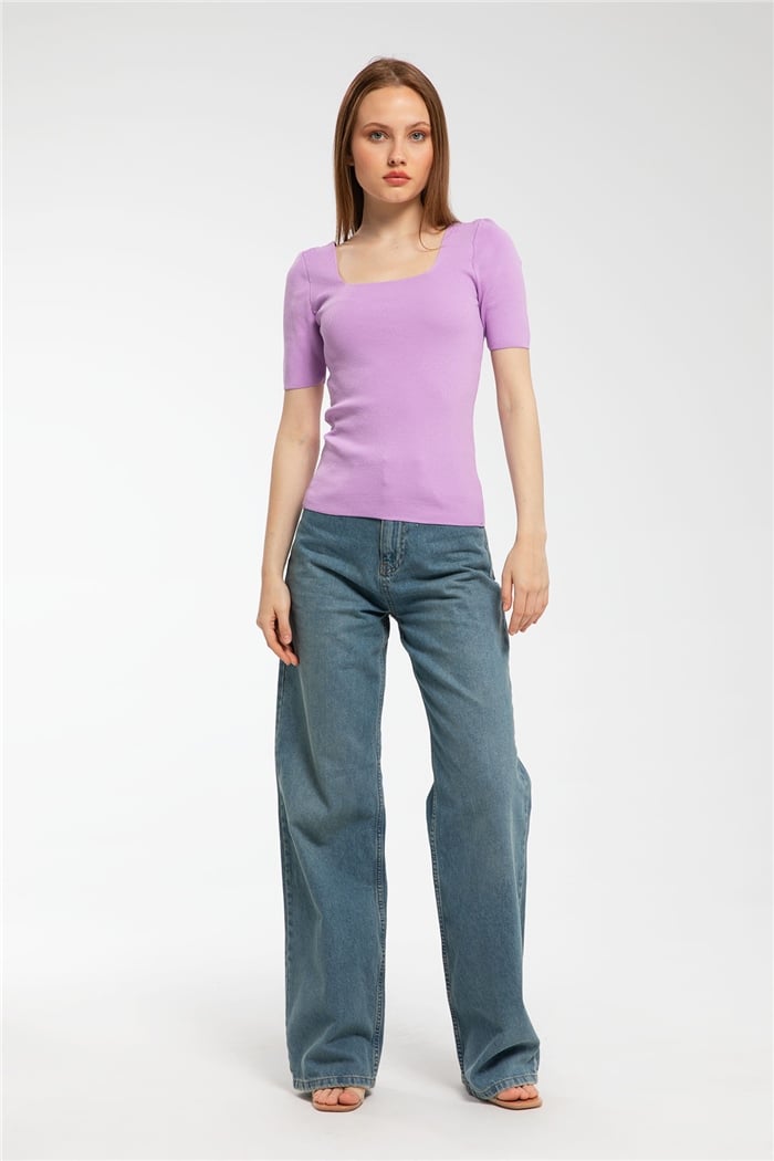 Avrile Kadın Kare Yaka Kısa Kollu Triko Kazak LİLA A91617-S (A91617-S)