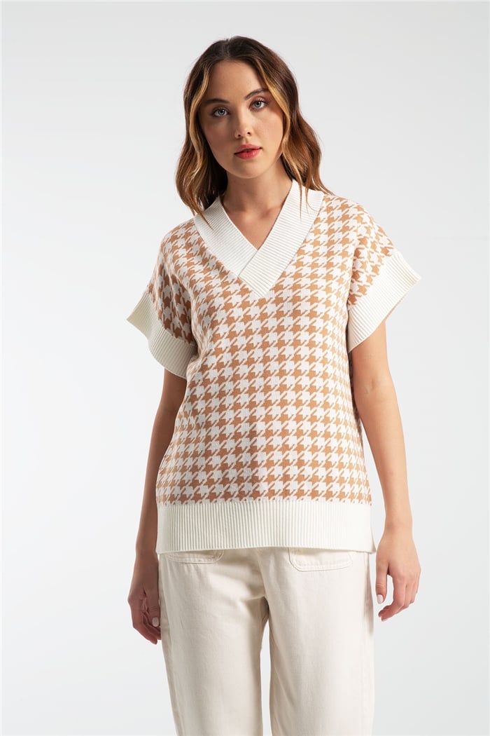 Avrile Kadın Kazayağı Desenli Uzun Triko Süveter EKRU A91447-S (A91447-S)