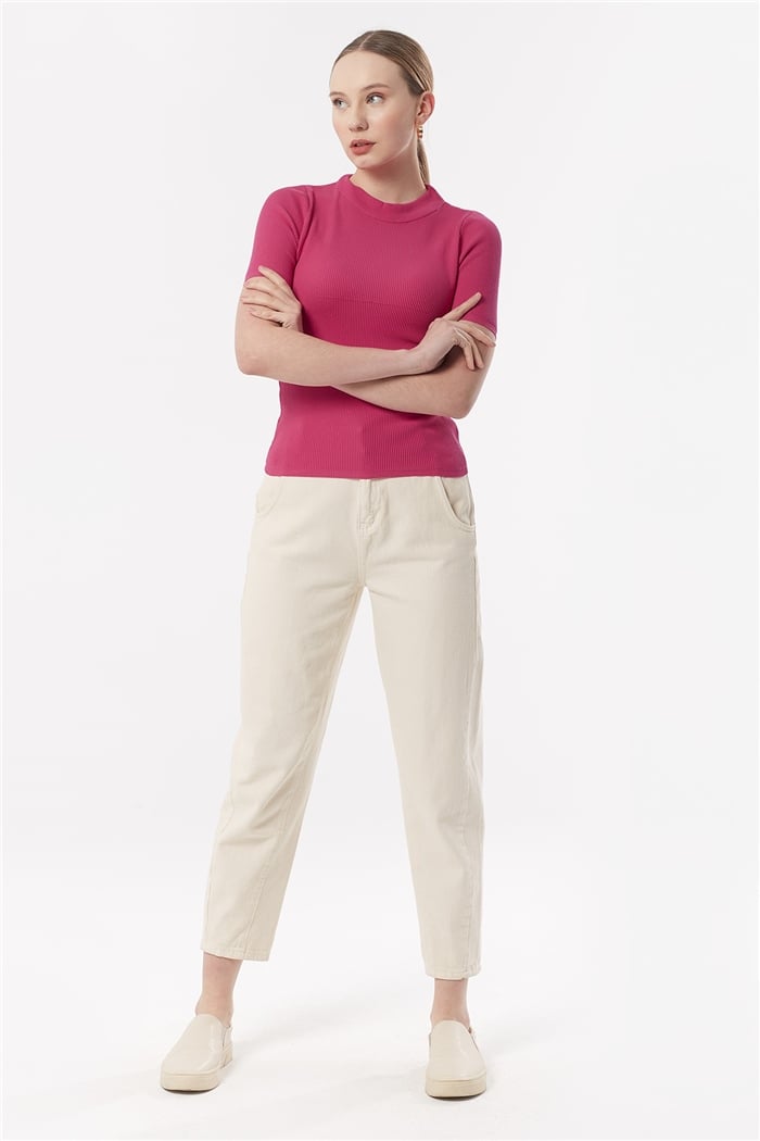 Avrile Kadın KISA KOLLU İNCE FİTİLLİ KAZAK FUŞYA A92013-S (A92013-S)