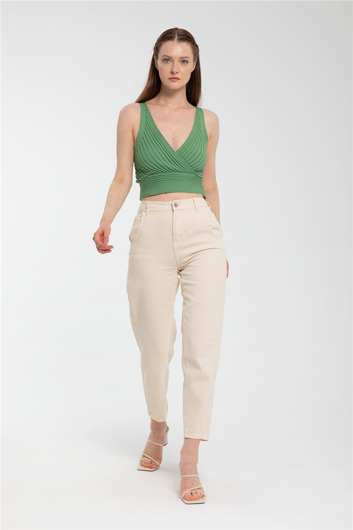 Avrile Kadın Kruvaze Yaka Fitilli Triko Bluz MİNT YEŞİLİ A91748-S (A91748-S)