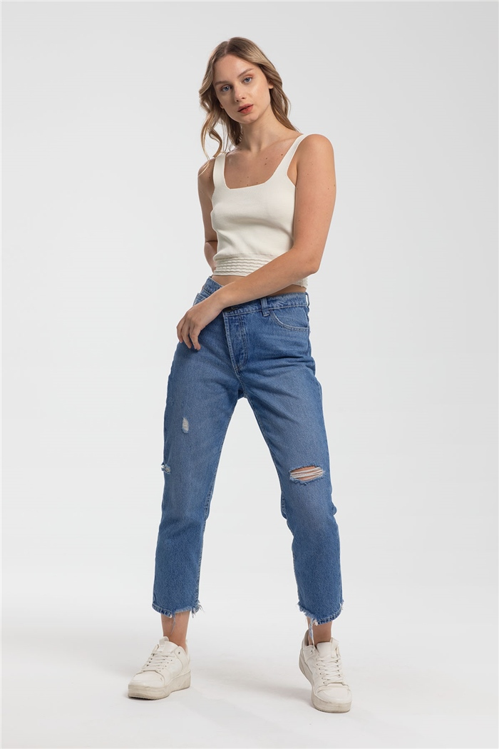 Avrile Lastiği Desenli Triko Bluz  BEYAZ  A91741-S