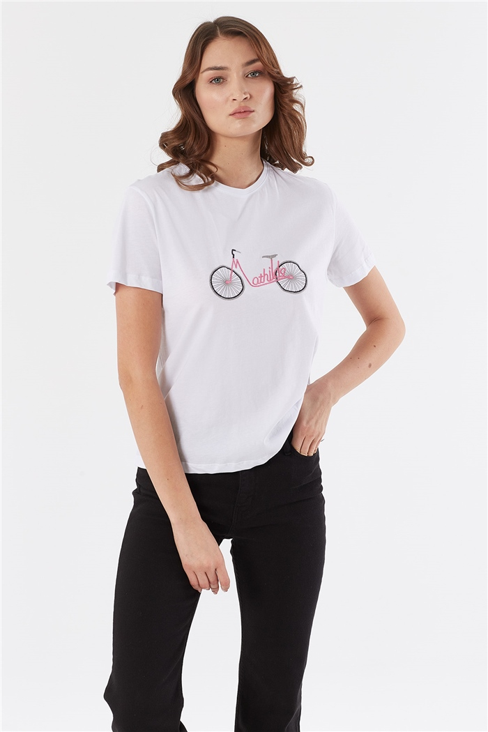Avrile NAKIŞLI T-SHIRT  BEYAZ  A22-10540