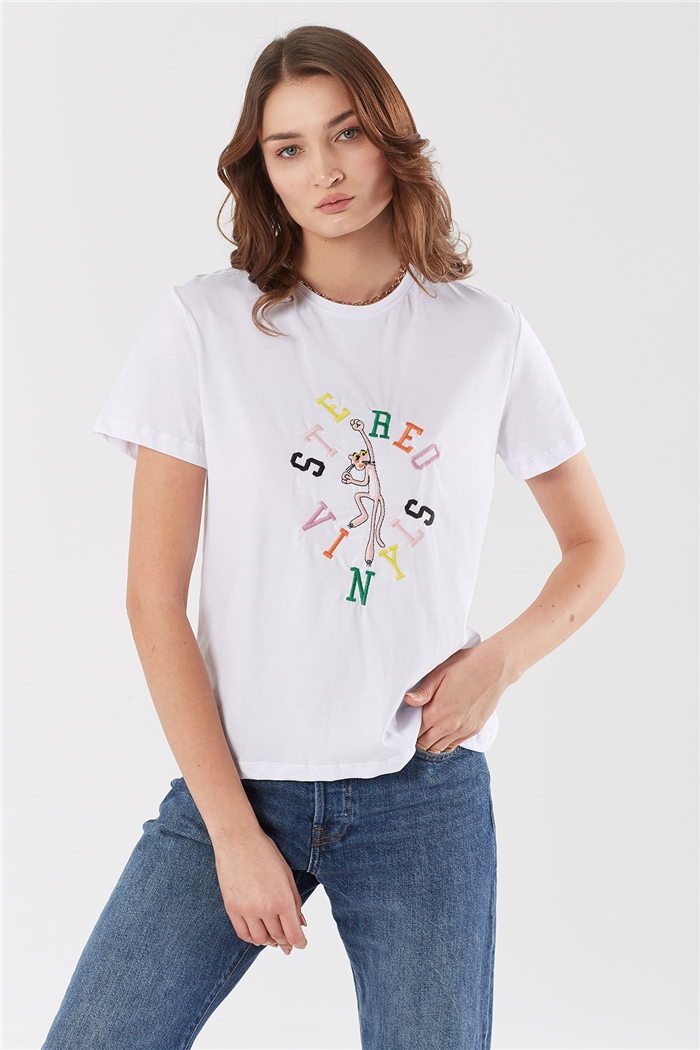Avrile Kadın NAKIŞLI T-SHIRT BEYAZ A22-10547