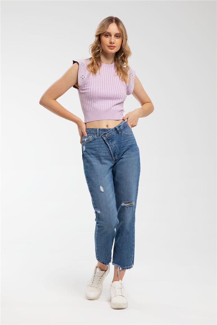 Avrile Kadın Omuzları Desenli Triko Süveter LİLA A91800-S (A91800-S)