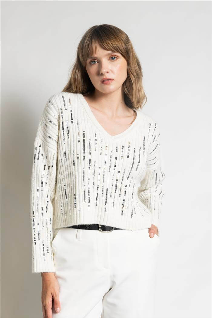Avrile PAYETLİ V YAKA KAZAK EKRU TT4387-Z (TT4387-Z)