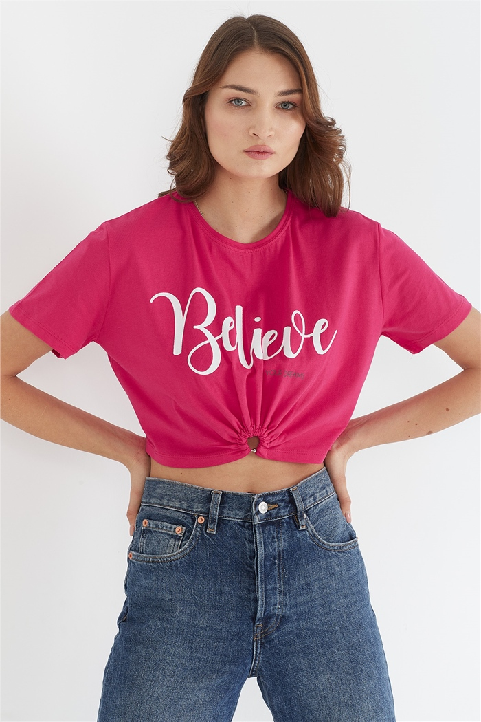 Avrile Piercing Detaylı T-shirt  FUŞYA  A22-10529