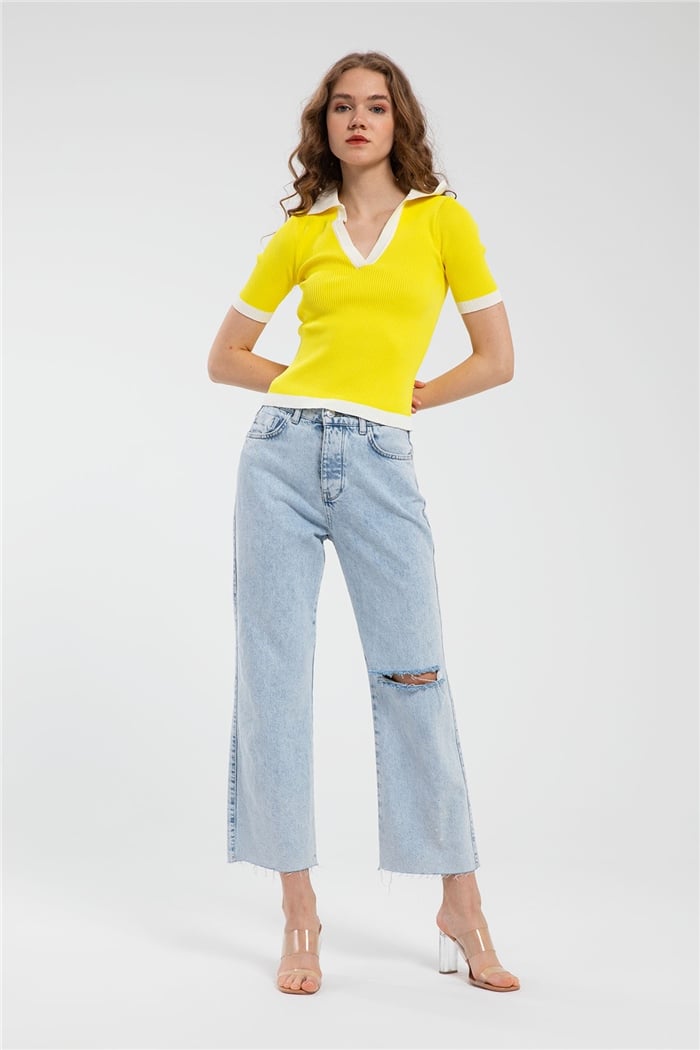 Avrile Polo Yaka Fitilli Triko Kazak  SARI  A91647-S