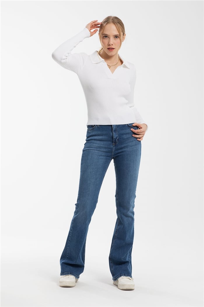 Avrile Polo Yakalı Uzun Kollu Triko Kazak  EKRU  A91896-S