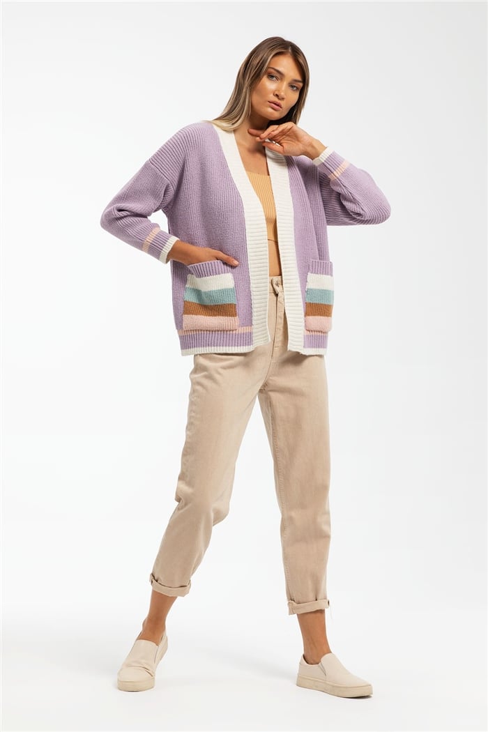 Avrile Kadın Selanik Çizgi Desenli Triko Hırka LİLA A91819-S (A91819-S)