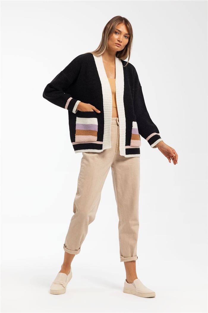 Avrile Kadın Selanik Çizgi Desenli Triko Hırka SİYAH A91819-S (A91819-S)