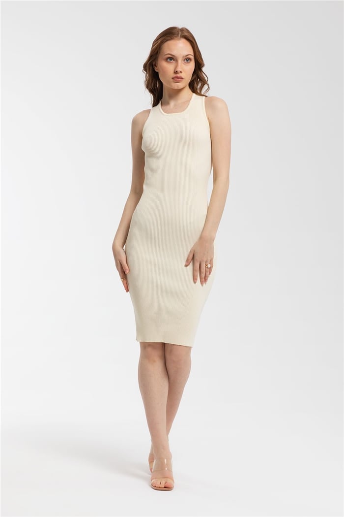 Avrile Sırt Dekolteli Triko Elbise  HAM EKRU  A91780-S