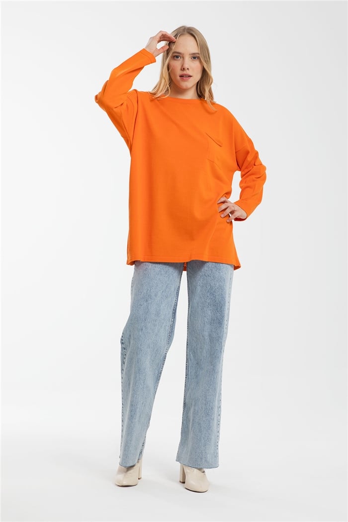 Avrile Kadın Tek Cepli Salaş Triko Kazak ORANJ A91908-S (A91908-S)