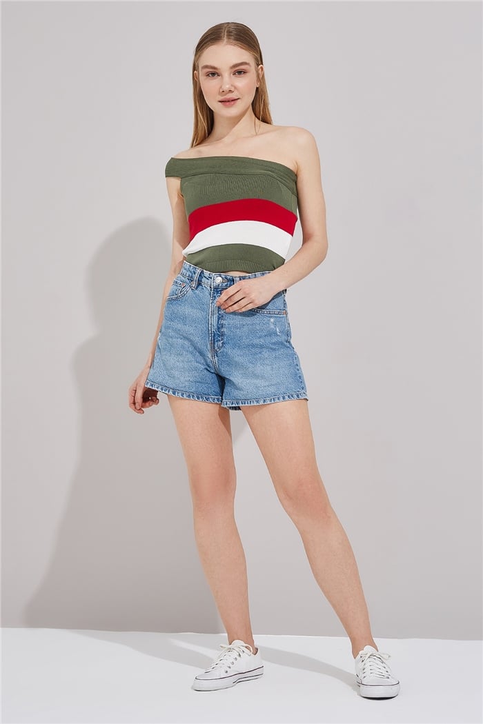 Avrile Kadın Tek Omuzlu Çizgili Triko Atlet HAKİ A91133-S (A91133-S)