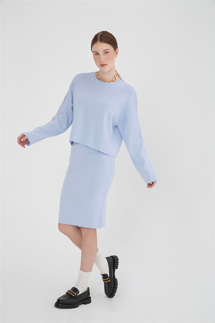 Avrile Kadın Triko Etek ve Kazak Takım BEBE MAVİ A92205-S