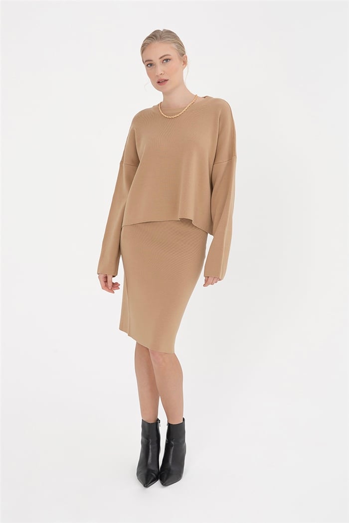 Avrile Kadın Triko Etek ve Kazak Takım CAMEL A92205-S