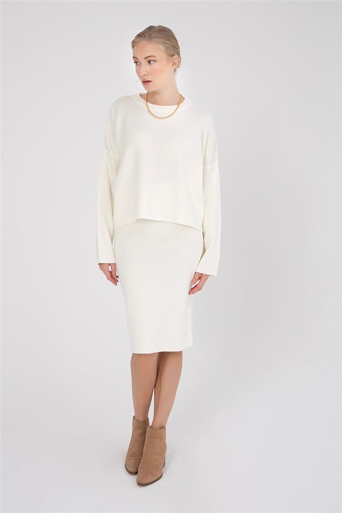 Avrile Kadın Triko Etek ve Kazak Takım EKRU A92205-S