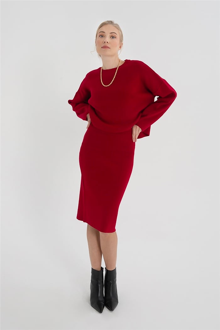 Avrile Kadın Triko Etek ve Kazak Takım KIRMIZI A92205-S
