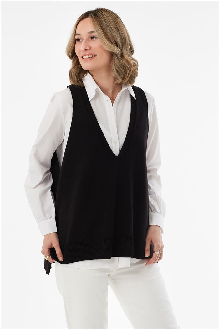 Avrile Kadın V YAKA SALAŞ SÜVETER SİYAH A92113-S (A92113-S)