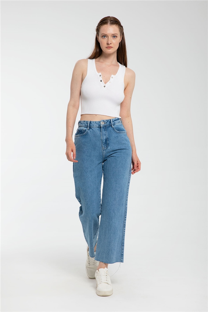Avrile Yakası Çıtçıtlı Triko Atlet  BEYAZ  A91752-S