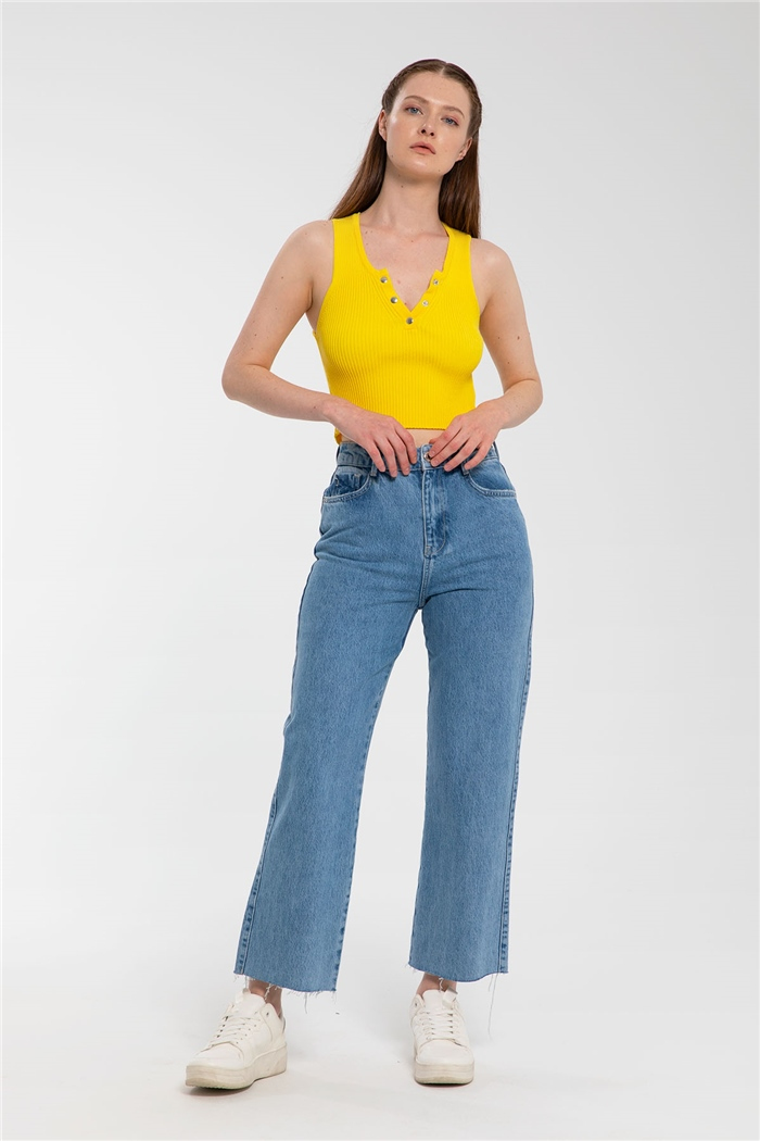 Avrile Yakası Çıtçıtlı Triko Atlet  SARI  A91752-S
