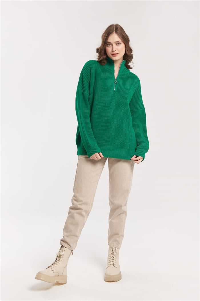 Yakası Fermuarlı Selanik Örgü Triko Kazak A91938-S