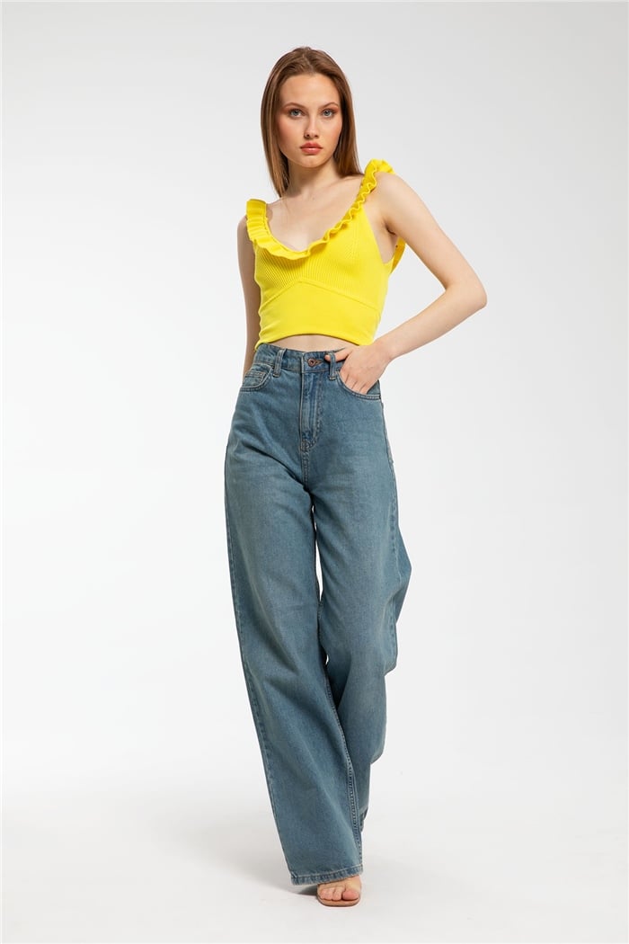 Avrile Yakası Fırfırlı Triko Bluz  SARI  A91749-S