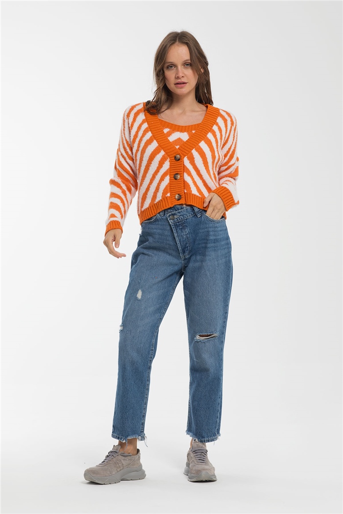 Avrile Kadın Zebra Desenli İçi Atletli Hırka ORANJ-BEYAZ A91888-S (A91888-S)