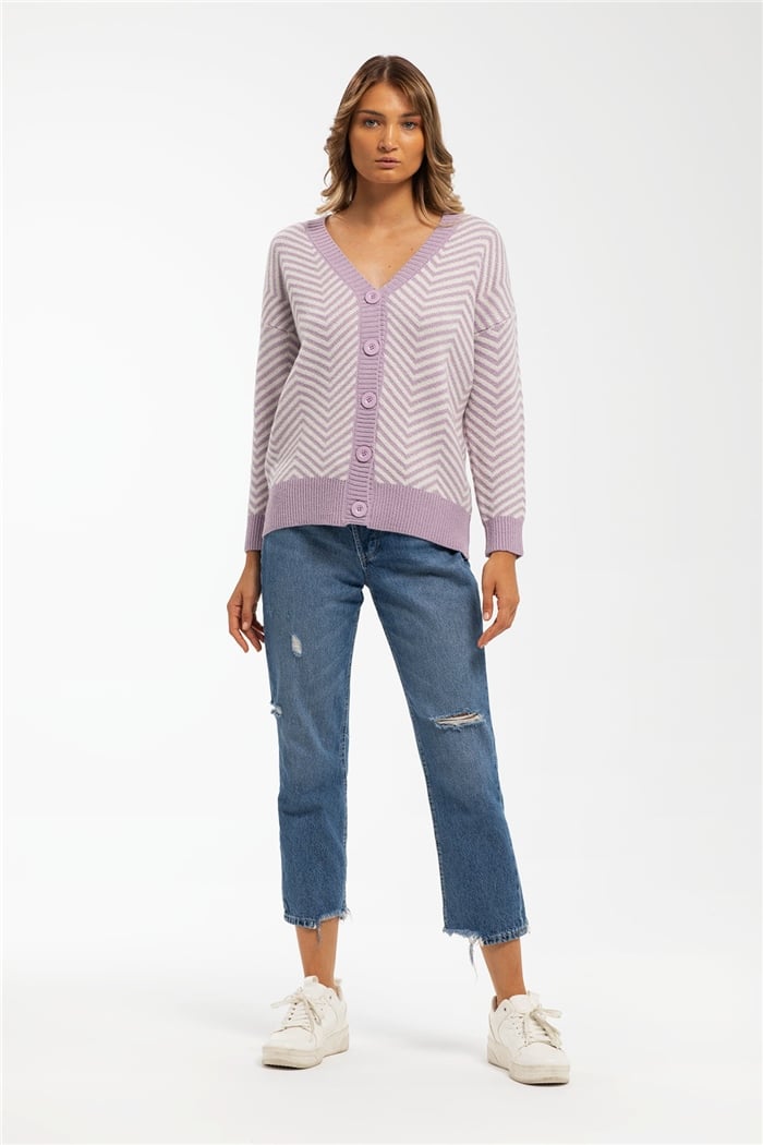 Avrile Zikzak Çizgili Triko Hırka  LİLA-EKRU  A91831-S
