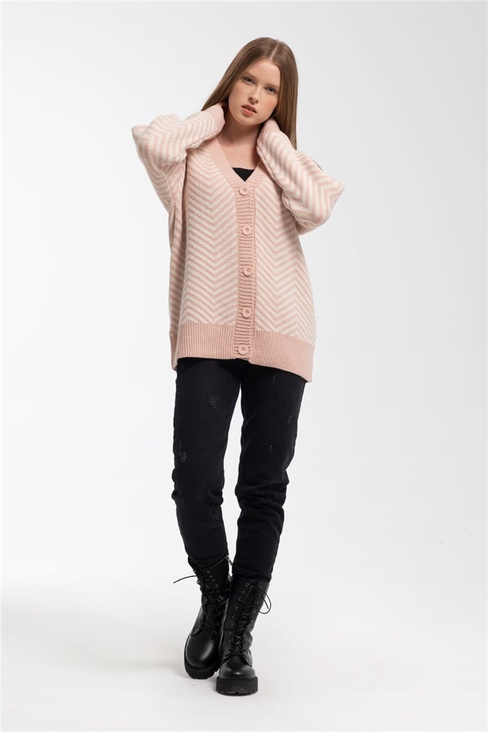 Avrile Kadın Zikzak Çizgili Triko Hırka PUDRA-EKRU A91831-S (A91831-S)