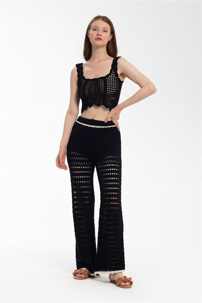Nisan Kadın Ajur Desenli Triko Atlet SİYAH TT3204-Z (TT3204-Z)