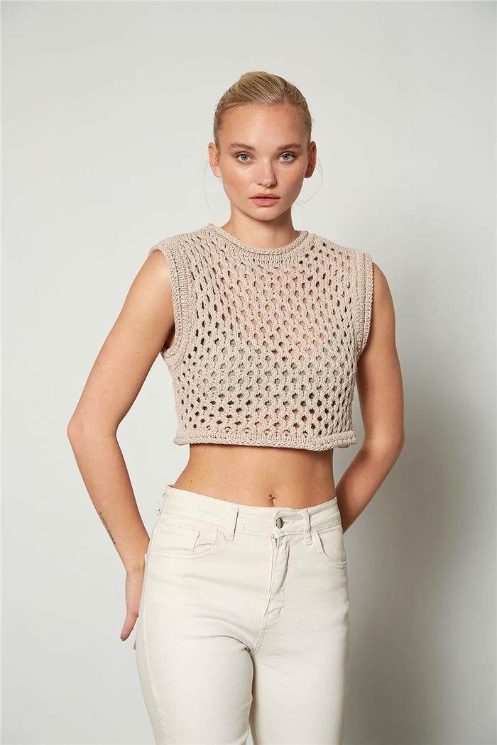 Nisan Kadın Ajurlu Crop Triko Süveter BEJ TT3131-Z (TT3131-Z)