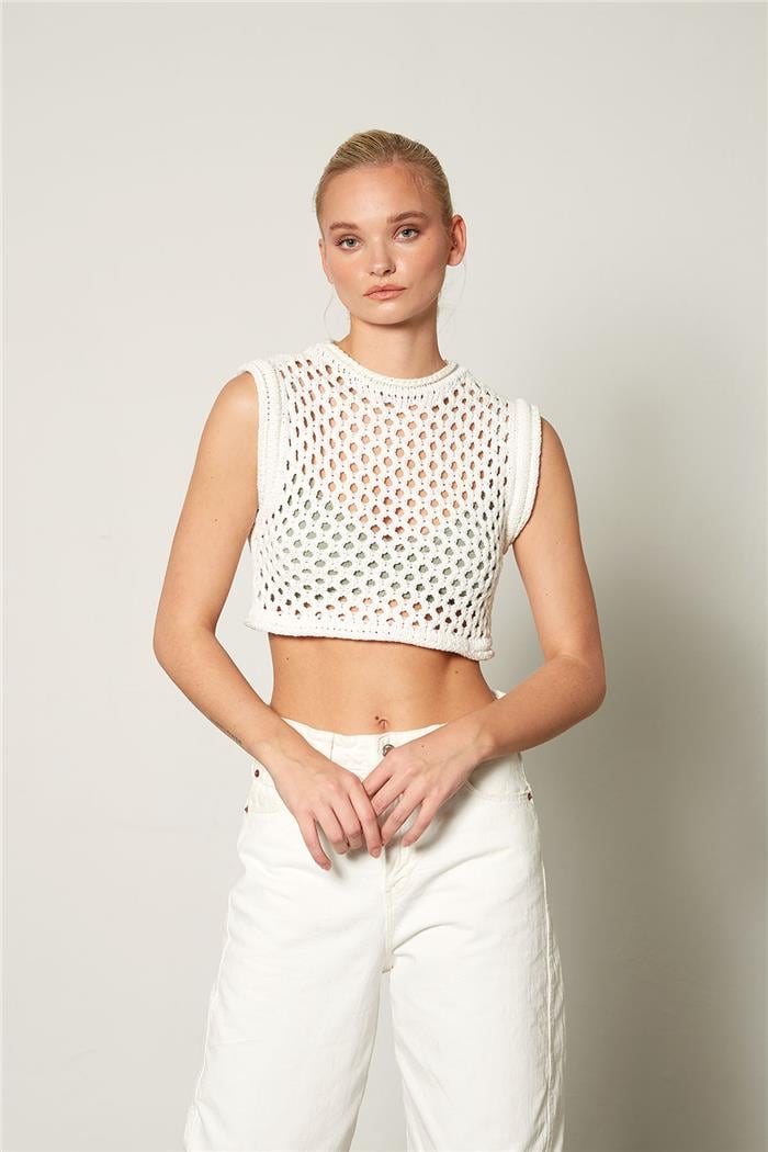 Nisan Kadın Ajurlu Crop Triko Süveter HAM EKRU TT3131-Z (TT3131-Z)