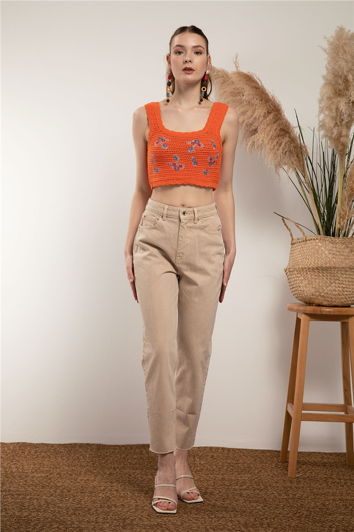Nisan Kadın Ajurlu Kare Yaka Nakışlı Triko Atlet ORANJ TT3088-Z (TT3088-Z)