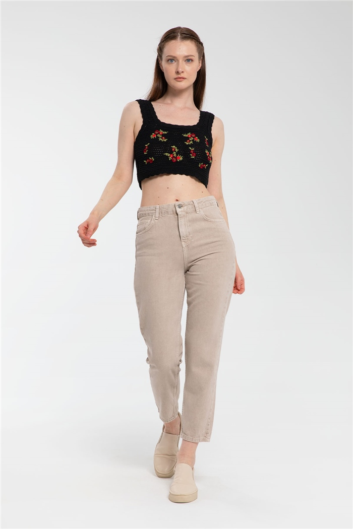 Nisan Kadın Ajurlu Kare Yaka Nakışlı Triko Atlet SİYAH TT3088-Z (TT3088-Z)
