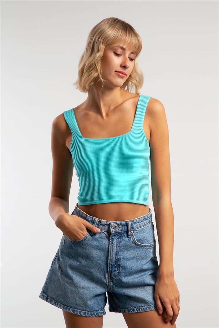 Nisan Bekletmeli Triko Bluz  AQUA  TT2531-S