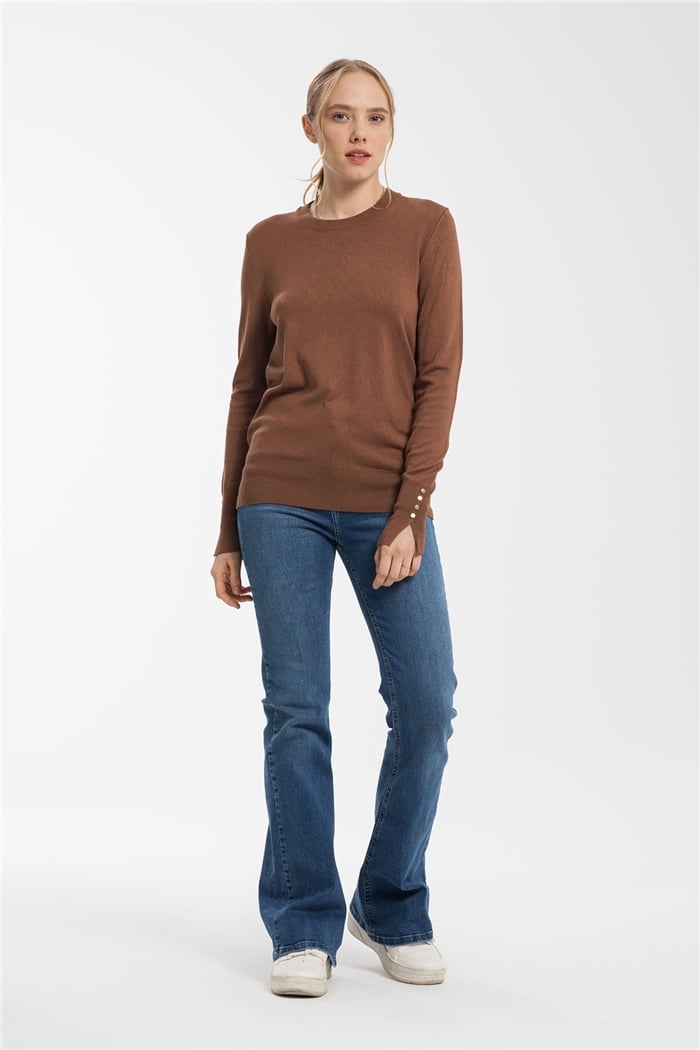 Nisan Kadın Bisiklet Yaka Manşetleri Çıtçıtlı Triko Kazak KAHVE TT3316-Z (TT3316-Z)