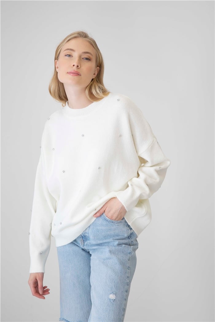 Soğuk kış günlerinde içinizi ısıtacak taşlı salaş kazak modellerimiz, özgün çizgilerle buluşarak stilinizi ortaya koyuyor.