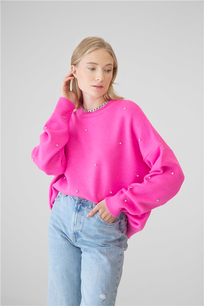 Bisiklet Yaka Taşlı Salaş Kazak FUŞYA